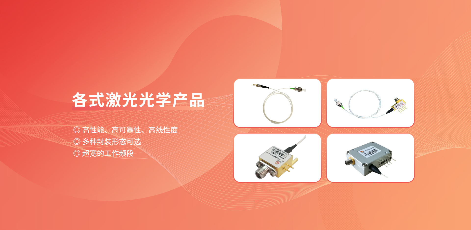 公司產(chǎn)品廣泛應(yīng)用于衛(wèi)星通信、光傳感、人工智能、光纖通信、無線通信、導(dǎo)航定位、泛物聯(lián)網(wǎng)、激光定向能、超快超強(qiáng)超微激光加工等領(lǐng)域,并已為國(guó)內(nèi)諸多科研院所及高校提供系列化產(chǎn)品及解決方案。